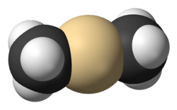 Dimethylcadmium is the organocadmium compound with the formula Cd(CH3)2. It is a colorless, highly toxic liquid that fumes in air. It is a linear molecule with C-Cd bond lengths of 213 pm.[1] The compound finds limited use as a reagent in organic synthesis and in metalorganic chemical vapor deposition (MOCVD). It has also been used in the synthesis of cadmium selenide nanoparticles, although efforts have been made to replace it in this capacity due to its toxicity.[2]