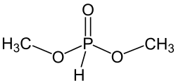 Dimethylphosphite is an organophosphorus compound with the formula (CH3O)2P(O)H, known as dimethyl hydrogen phosphite (DMHP). Dimethylphosphite, is a minor tautomer of the phosphorus(V) derivative. It is a reagent for generating other organophosphorus compounds, exploiting the high reactivity of the P-H bond. The molecule is tetrahedral. It is a colorless liquid. The compounds can be prepared by methanolysis of phosphorus trichloride or by heating diethylphosphite in methanol.[1]
