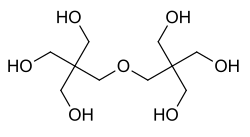 Dipentaerythritol is an organic compound with the formula O[CH2C(CH2OH)3]2. The molecular structure can be described as the ether derivative of pentaerythritol. It is therefore a polyol, which are useful in the production of alkyd resins. The compound is a by product in the production of pentaerythritol but also can be prepared intentionally from the latter:[1]