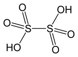 Dithionic acid, H2S2O6, is the inorganic compound with the formula H2S2O6. It is the doubly protonated derivative of dithionate, a well-characterized dianion. Dithionic acid is mainly observed and characterized as an aqueous solution.[3]