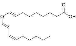 1. ^ Galliard, T.; Phillips, D. R. (September 1972). "The enzymic conversion of linoleic acid into 9-(nona-1′,3′-dienoxy)non-8-enoic acid, a novel unsaturated ether derivative isolated from homogenates of Solanum tuberosum tubers". Biochemical Journal. 129 (3): 743–753. doi:10.1042/bj1290743. PMC 1174176. PMID 4658996.