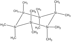 Dodecamethylcyclohexasilane is the organosilicon compound with the formula Si6(CH3)12. It is one of the more readily prepared and easily handled polysilanes. Dodecamethylcyclohexasilane is produced by reduction of dimethyldichlorosilane with sodium–potassium alloy:[1]