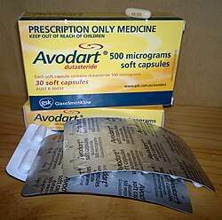 - ^ a b c d "AVODART (dutasteride) Soft Gelatin Capsules Prescribing information" (PDF). GlaxoSmithKline. U.S. Food and Drug Administration. Archived (PDF) from the original on 3 April 2021. Retrieved 10 January 2020.