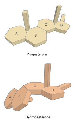 - ^ Colombo D, Ferraboschi P, Prestileo P, Toma L (January 2006). "A comparative molecular modeling study of dydrogesterone with other progestational agents through theoretical calculations and nuclear magnetic resonance spectroscopy". The Journal of Steroid Biochemistry and Molecular Biology. 98 (1): 56–62. doi:10.1016/j.jsbmb.2005.07.009. PMID 16216490. S2CID 35936384.