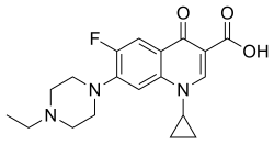 Enrofloxacin, sold under the brand name Baytril, among others, is a fluoroquinolone antibiotic used for the treatment of animals.[1] It is a bactericidal agent.[1]
