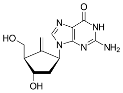 - ^ a b Bisacchi GS, Chao ST, Bachard C, Daris JP, Innaimo SF, Jacobs JA, et al. (1997). "BMS-200475, a novel carbocyclic 29-deoxyguanosine analog with potent and selective antihepatitis B virus activity in vitro". Bioorganic & Medicinal Chemistry Letters. 7 (2): 127–132. doi:10.1016/s0960-894x(96)00594-x.