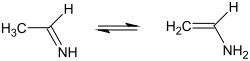 It has two tautomers: ethanimine, an imine, and ethenamine or aminoethylene, an amine. Ethanimine has two hydrogens on the carbon, while ethenamine has two on the nitrogen atom.