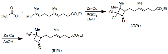 Ketene cycloadditions can be difficult to control; dichloroketene is typically used instead, followed by dehalogenation with zinc-copper couple.[29]
