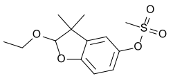 Ethofumesate is a pre- and post-emergent[1] benzofuran herbicide used on sugar beets to control weeds, notably blackgrasses. UK registration in 2016 is planned for preëmergent use on wheat as an auxiliary component of tank mix.[2][3] Ethofumesate is used in Australia, to control wintergrasses in turfgrasses, along fencelines and tree plantations. Young weeds absorb ethofumesate through roots and shoots, and the ethofumesate inhibits respiration and photosynthesis.[1] Ethofumesate is a Group J (Australia), K3 (Global), Group 15 (numeric), resistance class herbicide.[4]