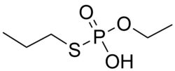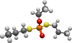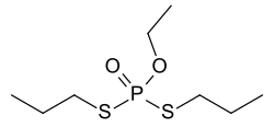 Ethoprophos (or ethoprop) is an organophosphate ester with the formula C8H19O2PS2.[1] It is a clear yellow to colourless liquid that has a characteristic mercaptan-like odour. It is used as an insecticide and nematicide[2] and it is an acetylcholinesterase inhibitor.[3]