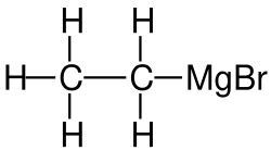 Apart from acting as the synthetic equivalent of an ethyl anion synthon for nucleophilic addition, ethylmagnesium bromide may be used as a strong base to deprotonate various substrates such as alkynes:[1]