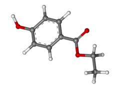 Ethylparaben (ethyl para-hydroxybenzoate) is the ethyl ester of p-hydroxybenzoic acid. Its formula is HO-C6H4-CO-O-CH2CH3. It is a member of the class of compounds known as parabens.