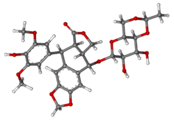 - ^ Gordaliza M, García PA, del Corral JM, Castro MA, Gómez-Zurita MA (2004). "Podophyllotoxin: distribution, sources, applications and new cytotoxic derivatives". Toxicon. 44 (4): 441–59. Bibcode:2004Txcn...44..441G. doi:10.1016/j.toxicon.2004.05.008. PMID 15302526.