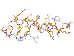 Exenatide is a 39-amino-acid peptide; it is a synthetic version of exendin-4, a peptide found in the venom of the Gila monster.[26]