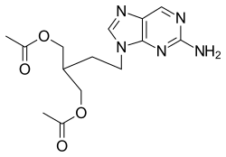 Famciclovir is a guanosine analogue antiviral drug used for the treatment of various herpesvirus infections, most commonly for herpes zoster (shingles). It is a prodrug form of penciclovir with improved oral bioavailability. Famciclovir is marketed under the trade name Famvir (Novartis).