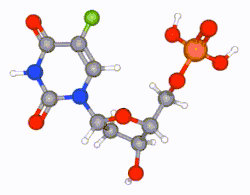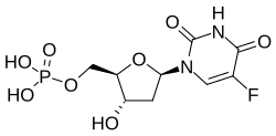 Fluorodeoxyuridylate,[1] also known as FdUMP, 5-fluoro-2'-deoxyuridylate, and 5-fluoro-2'-deoxyuridine 5'-monophosphate, is a molecule formed in vivo from 5-fluorouracil and 5-fluorodeoxyuridine.