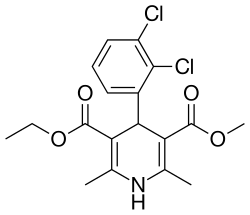 - ^ US patent 4,264,611, Berntsson P, Carlsson S, Gaarder J, Ljung B, "2,6-Dimethyl-4-2,3-Disubstituted Phenyl-1,4-Dihydro-Pyridine-3,5 Dicarboxylic Acid-3,5-Asymmetric Diesters having Hypotensive Properties, as well as Method for Treating Hypertensive Conditions and Pharmaceutical Preparations Containing Same", issued 28 April 1981, assigned to Aktiebolaget Hassle
