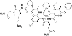 1-[19-Amino-13,16-dibenzyl-10-(2-carbamoyl-ethyl)-7-carbamoylmethyl-6,9,12,15,18-pentaoxo-1,2-dithia-5,8,11,14,17-pentaaza-cycloeicosane-4-carbonyl]-pyrrolidine-2-carboxylic acid [5-amino-1-(carbamoylmethyl-carbamoyl)-pentyl]-amide
