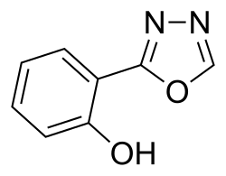 - ^ a b GB 902388, "Derivatives of 1,3,4-oxadiazole", issued 1 August 1962, assigned to Societe d'Exploitation des Laboratoires Jacques Logeais Abstract: The title compds., possessed marked hypnotic and sedative properties, were prepd. by heating salicylic acid hydrazide (I) with an alkyl orthoformate (excess) and removing the alc. corresponding to the alkyl group of the selected orthoformate by continuous distn. Thus, 431 g. I, 800 ml. ethyl orthoformate, and 2350 ml. xylene was refluxed while stirring and the alc. removed continuously by distn. After 6 hrs., the hot soln. was filtered, and cooled (0°) to give 2-(o-hydroxyphenyl)-1,3,4-oxadiazole (II), m. 109-10°, in 92.5% yield. Derivs. of II were obtained by replacing the H atom of the phenolic hydroxyl by metals.