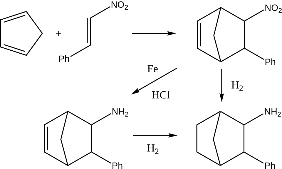 The Diels-Alder reaction of β-nitrostyrene and cyclopentadiene is described in a number of early papers.[9][10]