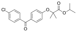 Fenofibrate is a fibrate derivative, a prodrug comprising fenofibric acid linked to an isopropyl ester. It lowers lipid levels by activating peroxisome proliferator-activated receptor alpha (PPARα). PPARα activates lipoprotein lipase and reduces apoprotein CIII, which increases lipolysis and elimination of triglyceride-rich particles from plasma.[30]