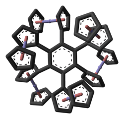 - ^ Yu Y, Bond AD, Leonard PW, Vollhardt KP, Whitener GD (March 2006). "Syntheses, structures, and reactivity of radial oligocyclopentadienyl metal complexes: penta(ferrocenyl)cyclopentadienyl and congeners". Angewandte Chemie. 45 (11): 1794–1799. Bibcode:2006ACIE...45.1794Y. doi:10.1002/anie.200504047. PMID 16470902.