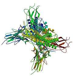 Filgrastim, sold under the brand name Neupogen among others, is a medication used to treat low neutrophil count.[22] Low neutrophil counts may occur with HIV/AIDS, following chemotherapy or radiation poisoning, or be of an unknown cause.[22] It may also be used to increase white blood cells for gathering during leukapheresis.[22] It is given either by injection into a vein or under the skin.[22] Filgrastim is a leukocyte growth factor.[21]