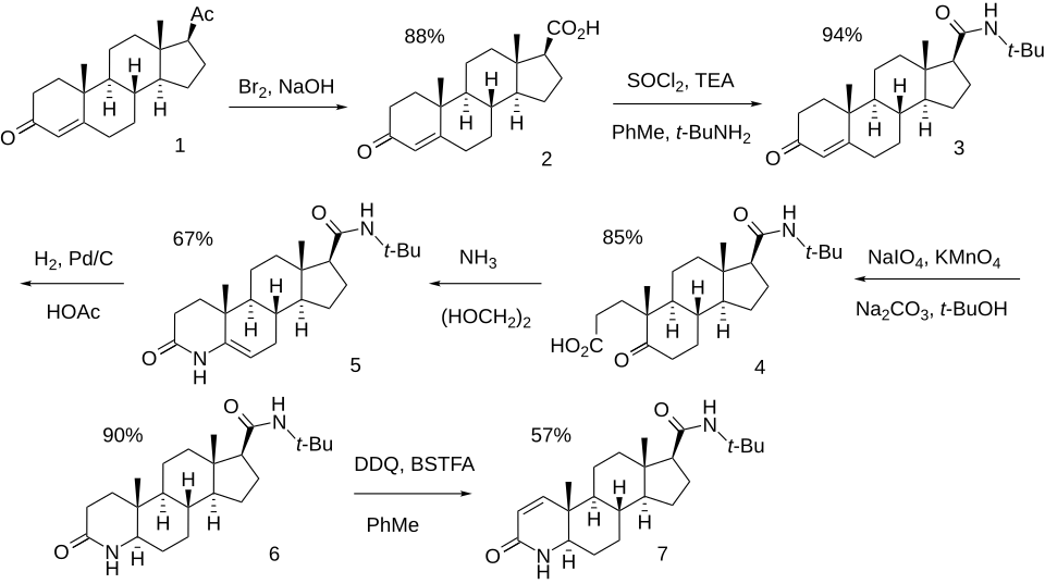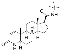 - ^ Tian G, Stuart JD, Moss ML, Domanico PL, Bramson HN, Patel IR, et al. (March 1994). "17 beta-(N-tert-butylcarbamoyl)-4-aza-5 alpha-androstan-1-en-3-one is an active site-directed slow time-dependent inhibitor of human steroid 5 alpha-reductase 1". Biochemistry. 33 (8): 2291–2296. doi:10.1021/bi00174a041. PMID 8117686.