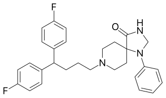 Fluspirilene (Redeptin, Imap, R6218) is a diphenylbutylpiperidine typical antipsychotic drug, used for the treatment of schizophrenia.[1] It is administered intramuscularly.[2] It was discovered at Janssen Pharmaceutica in 1963.[3] A 2007 systematic review investigated the efficacy of fluspirilene decanoate for people with schizophrenia: