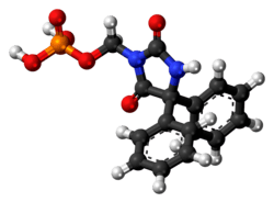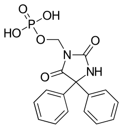 Fosphenytoin, also known as fosphenytoin sodium, and sold under the brand name Cerebyx among others, is a water-soluble phenytoin prodrug that is administered intravenously to deliver phenytoin, potentially more safely than intravenous phenytoin. It is used in the acute treatment of convulsive status epilepticus.