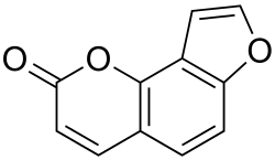 The furanocoumarins, or furocoumarins, are a class of organic chemical compounds produced by a variety of plants. Most of the plant species found to contain furanocoumarins belong to a handful of plant families. The families Apiaceae and Rutaceae (citrus family) include the largest numbers of plant species that contain furanocoumarins.[1] The families Moraceae and Fabaceae include a few widely distributed plant species that contain furanocoumarins.[2]