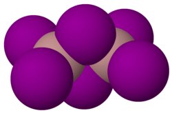 Gallium(III) iodide is the inorganic compound with the formula GaI3. A yellow hygroscopic solid, it is the most common iodide of gallium.[3] In the chemical vapor transport method of growing crystals of gallium arsenide uses iodine as the transport agent. In the solid state, it exists as the dimer Ga2I6, with a diborane structure.[4] When vaporized, its forms GaI3 molecules of D3h symmetry where the Ga–I distance is 2.458 Angstroms.[5]