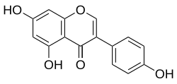 Genistein (C15H10O5) is a plant-derived, aglycone isoflavone.[1] Genistein has the highest content of all isoflavones in soybeans and soy products, such as tempeh. As a type of phytoestrogen, genistein has estrogenic activity in vitro; consequently, its long-term intake by consuming soy products may affect reproductive organs, such as the uterus and breast.[1]