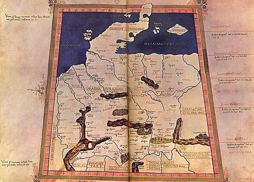 - ^ Wolfram 1999, p. 466. "Germania, an area, roughly speaking, between the oceans in the north and the Danube in the south, the Rhine in the west and the Vistula in the east. This ancient Germania also included Scandinavia, which was considered to be an island in the Baltic Sea."