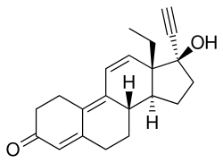 | Other names | Ethylnorgestrienone; A-46745; R2323; R-2323; RU-2323; 17α-Ethynyl-18-methyl-δ9,11-19-nortestosterone; 17α-Ethynyl-18-methylestra-4,9,11-trien-17β-ol-3-one; 13β-Ethyl-18,19-dinor-17α-pregna-4,9,11-trien-20-yn-17β-ol-3-one |