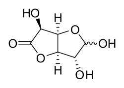 Glucuronolactone is a white solid odorless compound, soluble in hot and cold water. Its melting point ranges from 176 to 178 °C.[1] The compound can exist in a monocyclic aldehyde form or in a bicyclic hemiacetal (lactol) form.