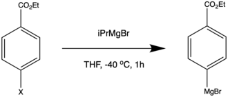 An example reaction of forming a Turbo-Grignard with an ester group.