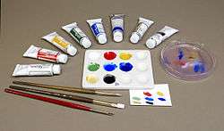 Gum arabic is used as a binder for watercolor painting because it dissolves easily in water. Pigment of any color is suspended within the acacia gum in varying amounts, resulting in watercolor paint. Water acts as a vehicle or a diluent to thin the watercolor paint and helps to transfer the paint to a surface such as paper. When all moisture evaporates, the acacia gum typically does not bind the pigment to the paper surface, but is totally absorbed by deeper layers.[21]