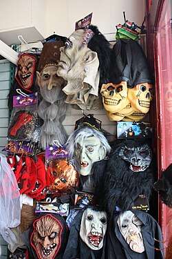 Halloween costumes were traditionally modeled after figures such as vampires, ghosts, skeletons, scary looking witches, and scarecrows.[72] Over time, the costume selection extended to include popular characters from fiction, celebrities, and generic archetypes such as ninjas and princesses.