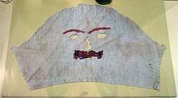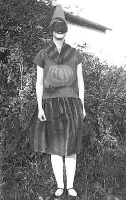 From at least the 16th century,[144] the festival included mumming and guising in Ireland, Scotland, the Isle of Man and Wales.[145] This involved people going house-to-house in costume (or in disguise), usually reciting verses or songs in exchange for food. It may have originally been a tradition whereby people impersonated the Aos Sí, or the souls of the dead, and received offerings on their behalf, similar to 'souling'. Impersonating these beings, or wearing a disguise, was also believed to protect oneself from them.[146] In parts of southern Ireland, the guisers included a hobby horse. A man dressed as a láir bhán (white mare) led youths house-to-house reciting verses – some of which had pagan overtones – in exchange for food. If the household donated food it could expect good fortune from the 'Muck Olla'; not doing so would bring misfortune.[147] In Scotland, youths went house-to-house with masked, painted or blackened faces, often threatening to do mischief if they were not welcomed.[145] F. Marian McNeill suggests the ancient festival included people in costume representing the spirits, and that faces were marked or blackened with ashes from the sacred bonfire.[144] In parts of Wales, men went about dressed as fearsome beings called gwrachod.[145] In the late 19th and early 20th century, young people in Glamorgan and Orkney cross-dressed.[145]