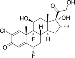 | Other names | (6S,8S,9R,10S,11S,13S,16R,17R)-2-chloro-6,9-difluoro-11,17-dihydroxy-17-(2-hydroxy-acetyl)-10,13,16-trimethyl-6,7,8,11,12,14,15,16-octahydrocyclopenta[a]phenanthren-3-one |