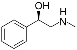 The presence of the hydroxy-group on the benzylic C of the N-methylphenylethanolamine molecule creates a chiral center, so the compound exists in the form of two enantiomers, d- and l-N-methylphenylethanolamine, or as the racemic mixture, d,l- N-methylphenylethanolamine. The dextrorotatory isomer corresponds to the S-configuration, and the levorotatory isomer to the R-configuration.[12][13]