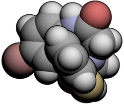 Haloxazolam (marketed in Japan under the brand name Somelin), is a drug which is a benzodiazepine derivative.[2][3][4] It has similar hypnotic properties as the benzodiazepine drugs triazolam, temazepam, and flunitrazepam and as such is indicated for the treatment of insomnia.[5] A study in cats comparing estazolam and haloxazolam found that haloxazolam only affects gamma motor neurons, whereas estazolam affects both alpha and gamma motor neurons.[6]