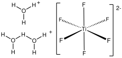 Hexafluorotitanic acid (systematically named oxonium hexafluoridotitanate(2-)) is an inorganic compound with the chemical formula (H3O)(H5O2)[TiF6]. According to X-ray crystallography, the salt consists of [TiF6]2- octahedral and two kinds of oxonium cations, (H3O)+ and (H5O2)+.[1]