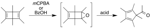 - ^ Junker, Hans-Nikolaus; Schäfer, Wolfgang; Niedenbrück, Hans (1967). "Oxydationsreaktionen mit Hexamethyl-bicyclo[2.2.0]-hexadien-(2.5) (= Hexamethyl-Dewar-Benzol)" [Oxidation reactions with hexamethylbicyclo[2.2.0]-hexa-2,5-diene (= Hexamethyl Dewar Benzene)]. Chem. Ber. (in German). 100 (8): 2508–2514. doi:10.1002/cber.19671000807.