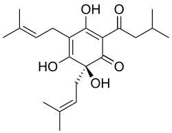 (6S)-3,5,6-Trihydroxy-2-(3-methylbutanoyl)-4,6-bis(3-methylbut-2-en-1-yl)cyclohexa-2,4-dien-1-one[1] | |