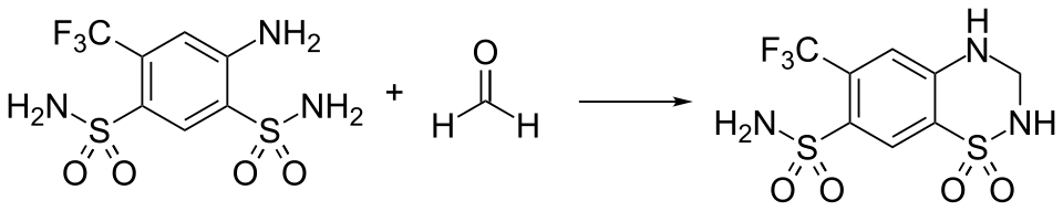 - ^ Holdrege CT, Babel RB, Cheney LC (1959). "Synthesis of Trifluoromethylated Compounds Possessing Diuretic Activity1". Journal of the American Chemical Society. 81 (18): 4807–4810. Bibcode:1959JAChS..81.4807H. doi:10.1021/ja01527a015.