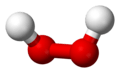 Hydrogen peroxide is a chemical compound with the formula H2O2. In its pure form, it is a very pale blue[5] liquid; however, at lower concentrations, it appears colorless due to the faintness of the blue coloration.[6] The molecule hydrogen peroxide is asymmetrical and highly polarized. Its strong tendency to form hydrogen bond networks results in greater viscosity compared to water. It is used as an oxidizer, bleaching agent, and antiseptic, usually as a dilute solution (3%–6% by weight) in water for consumer use and in higher concentrations for industrial use. Concentrated hydrogen peroxide, or "high-test peroxide", decomposes explosively when heated and has been used as both a monopropellant and an oxidizer in rocketry.[7]