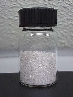 Hydroquinone, also known as benzene-1,4-diol or quinol, is an aromatic organic compound that is a type of phenol, a derivative of benzene, having the chemical formula C6H4(OH)2. It has two hydroxyl groups bonded to a benzene ring in a para position. It is a white granular solid. Substituted derivatives of this parent compound are also referred to as hydroquinones. The name "hydroquinone" was coined by Friedrich Wöhler in 1843.[7]