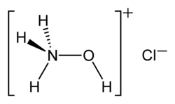 Hydroxylammonium chloride is a chemical compound with the formula [NH3OH]+Cl. It is the hydrochloric acid salt of hydroxylamine (NH2OH). Hydroxylamine is a biological intermediate in nitrification (biological oxidation of ammonia with oxygen into nitrite) and in anammox (biological oxidation of nitrite and ammonium into dinitrogen gas) which are important in the nitrogen cycle in soil and in wastewater treatment plants.